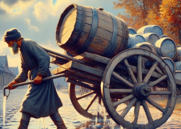 - Тяжелый труд: Возить воду — это был тяжелый, непрестижный и необходимый труд, особенно в деревнях, где не было водопровода. Это работа, которую, как правило, поручали самым младшим, слабым или, в случае наказания, провинившимся.